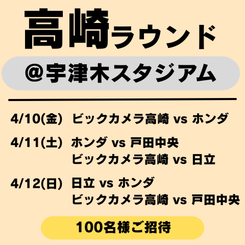 下記の開幕節(第1節)に、各ラウンド100名、合計400名を無料でご招待させていただきます。