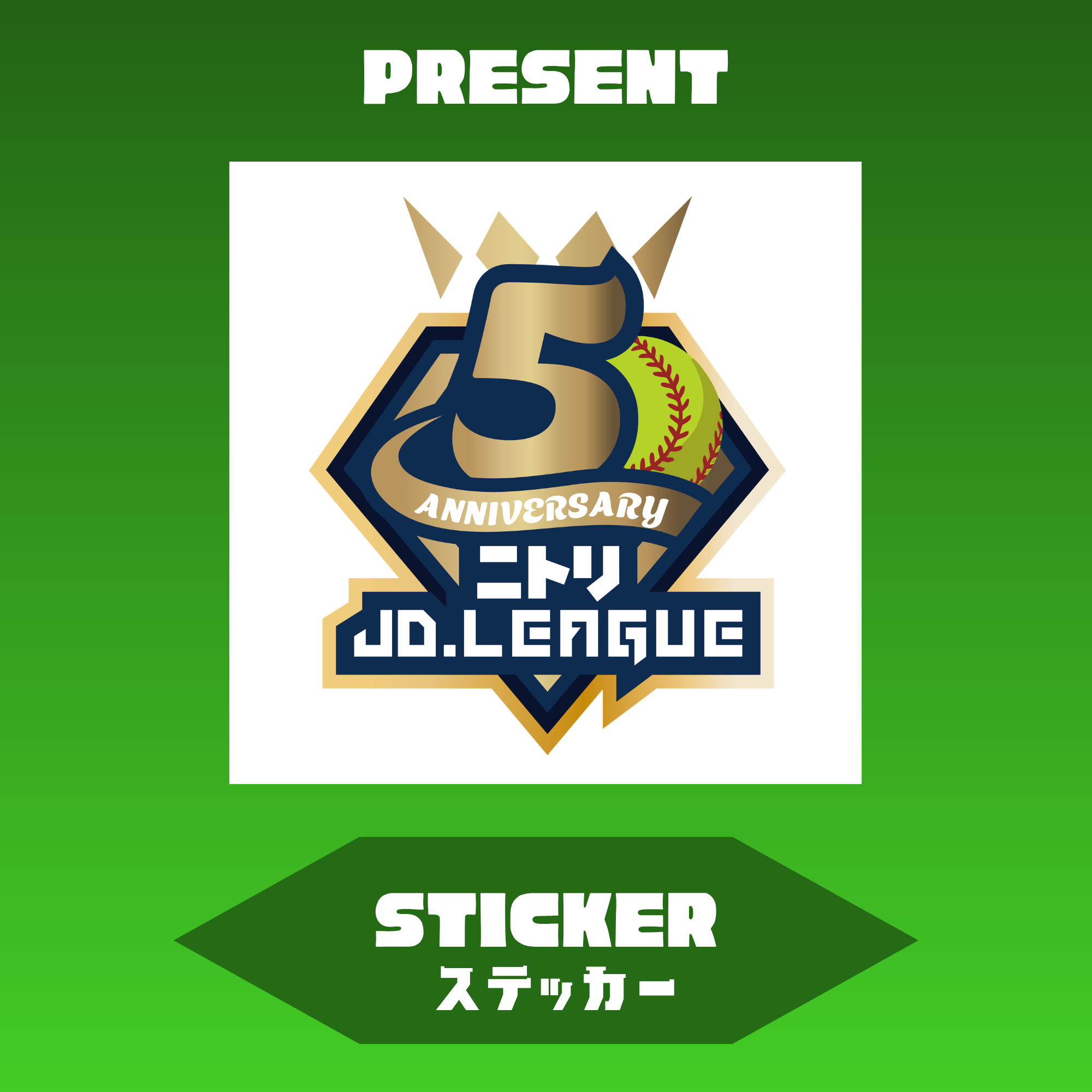 ニトリJD.LEAGUEの5年目のシーズン開幕を記念して、5周年ロゴのステッカーを開幕節の4会場で各日(4/10・11・12)先着で1000名様に配布します。