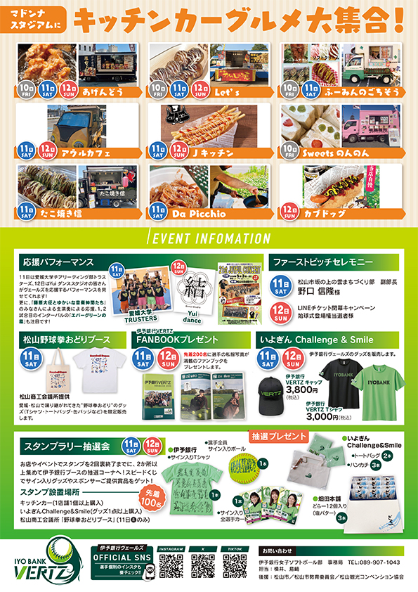 4月10日(金)~12日(日)にマドンナスタジアム(愛媛県松山市)で開催される、第1節・松山ラウンドのイベント情報をお知らせいたします。