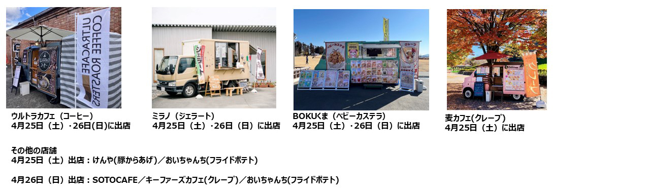 4月25日(土)・26日(日)には以下のキッチンカーが出店を予定しております。
